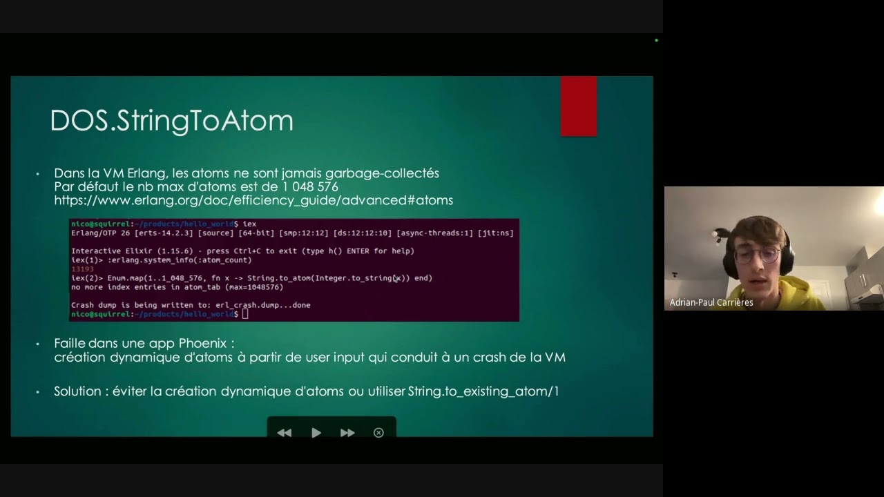 Adrian-Paul présente les différents outils mis en place chez Myriad Connect pour détecter de façon automatisée les vulnérabilités des applications Elixir et comment les corriger.